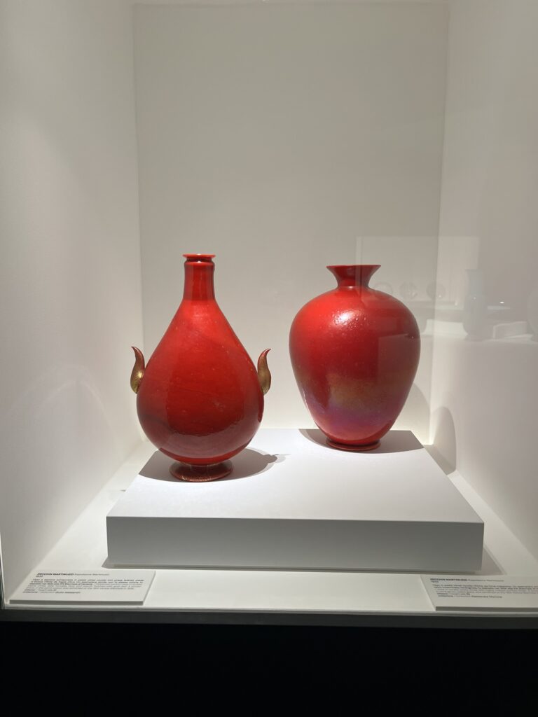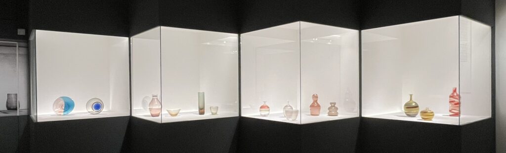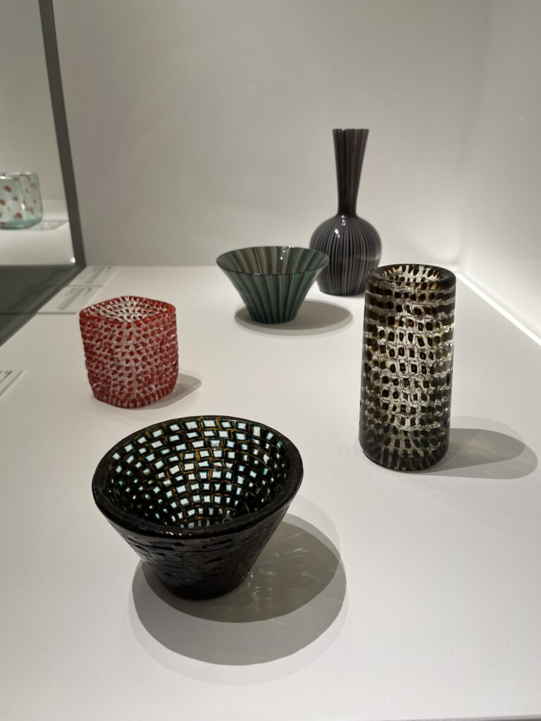 The exhibition starts with some old videos of the Biennale, showing you the glamour of visiting such an event in these times. The following rooms are filled with names that will sound familiar if you already know a bit about Murano. You will come across impressive pieces from Venini, Barovier Seguso & Ferro (later Seguso Vetri d’Arte), Flavio Poli, Dino Martens, and many others who left their mark on this period. Also the Venetian architect Carlo Scarpa worked for Venini during his career. His refined designs still look surprisingly modern. Together, the stunning glass works show how diverse the approaches to glassmaking were, ranging from subtle, architectural forms to bold, colourful experiments.